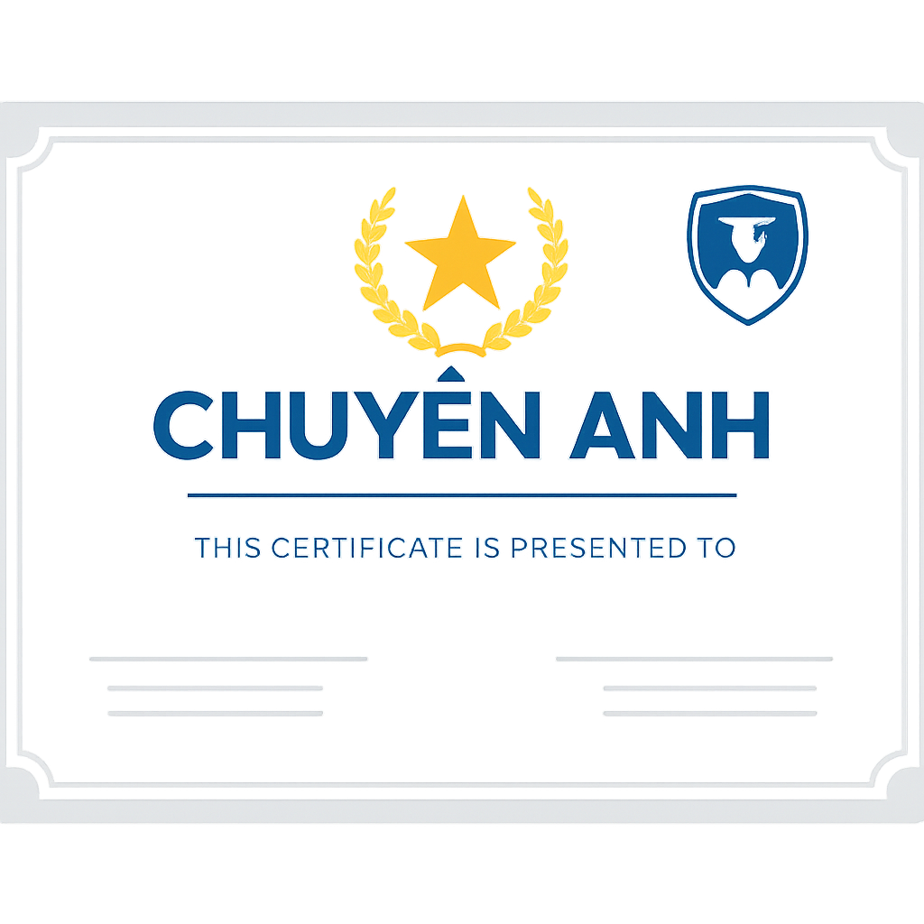 Chứng nhận này ghi nhận nỗ lực và hiệu quả của Chuyên Anh trong việc xây dựng chương trình học cá nhân hóa, kết hợp công nghệ và phương pháp hiện đại, giúp học viên phát triển kỹ năng tiếng Anh vững chắc và toàn diện.